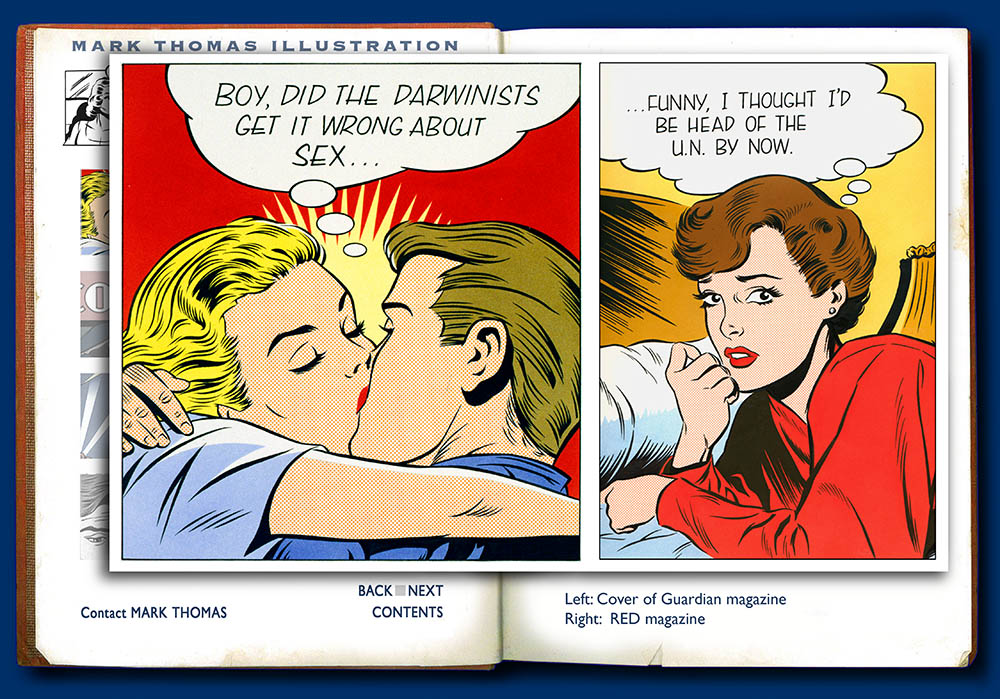 Boy did the Darwinists get it wrong about sex Bearings Bank crash For Sunday Telegraph Batman & Superman Tomorrows World C'est dingue… Tiago Monteiro Terminator Clash of the Titans Love and Marriage Long distance love KER-BLAAM! BACK NEXT Contact Mark Thomas Back to Contents NEXT Enlarge Image Boy did the Darwinists get it wrong about sex. Comic style illustration by Mark Thomas. Please note this is a UK based all image site